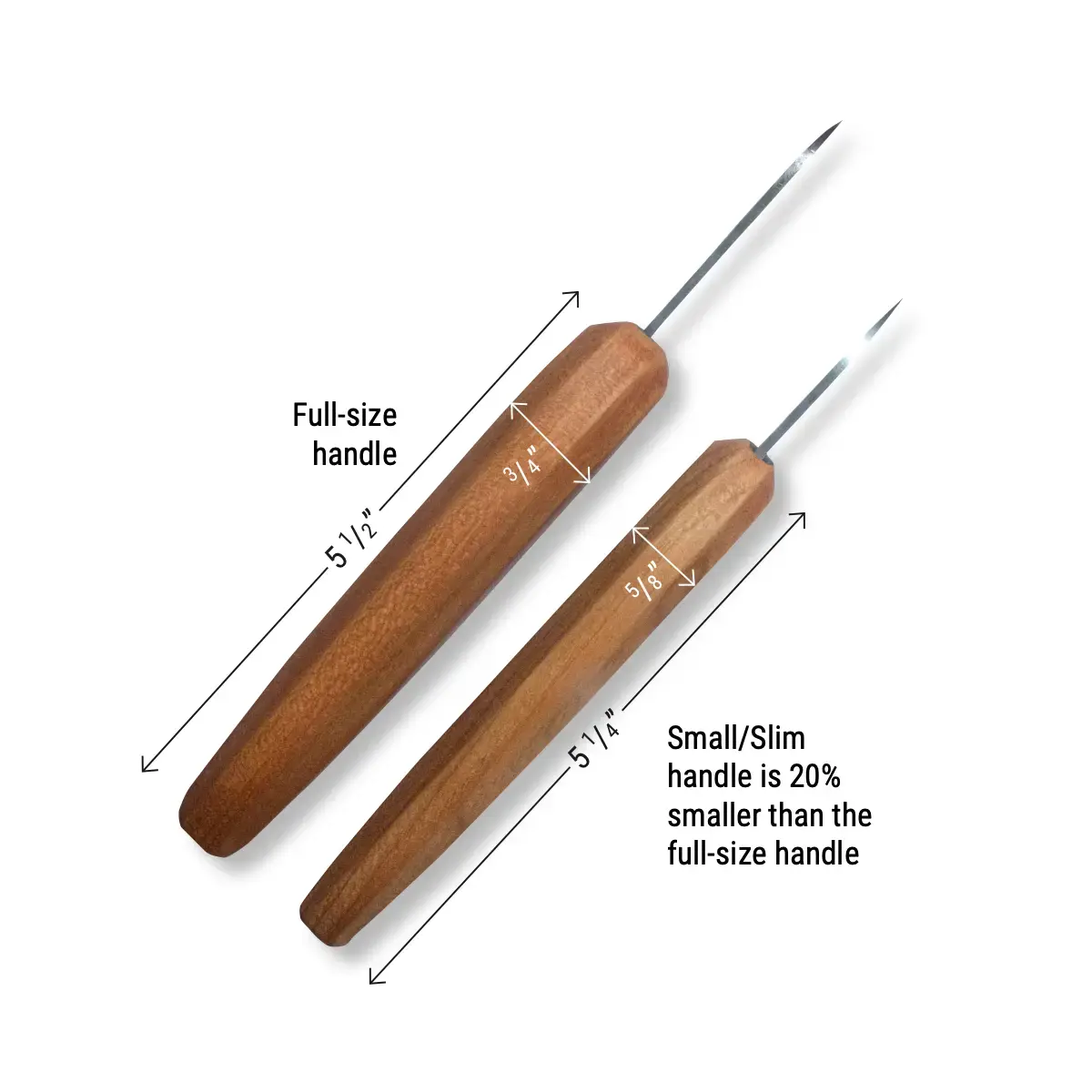 This set of two knives delivers the Flexcut Pro experience for users who prefer a smaller and slimmer handle. The small/slim handle is approximately 20% slimmer and slightly shorter than the full-sized handle.