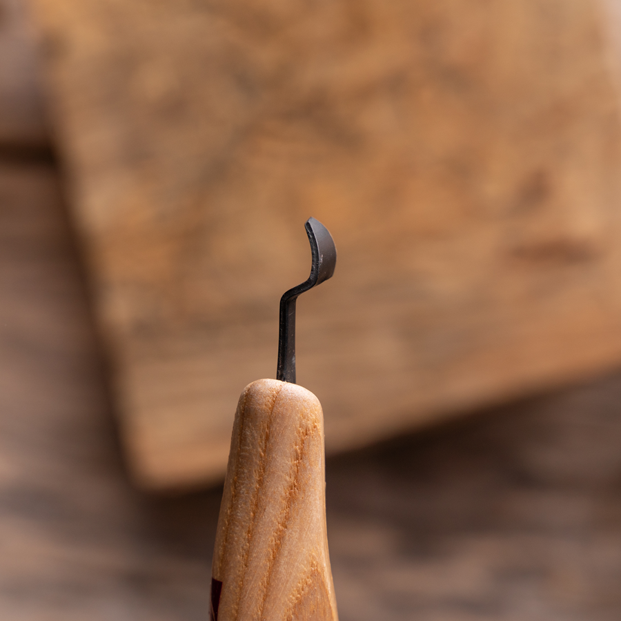 Scorps are essentially right-angled gouges designed for carving areas where the full length of a gouge will not fit. Knife carvers will find them useful for hollowing deep, narrow cavities. Right and left-handed models are available.