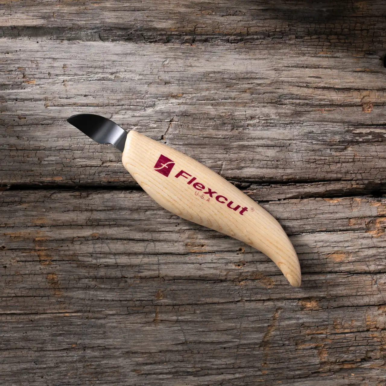 Our Right-Handed Hook Knife blade is curved, similar to a gouge, for working in hollows with ease and fast stock removal.