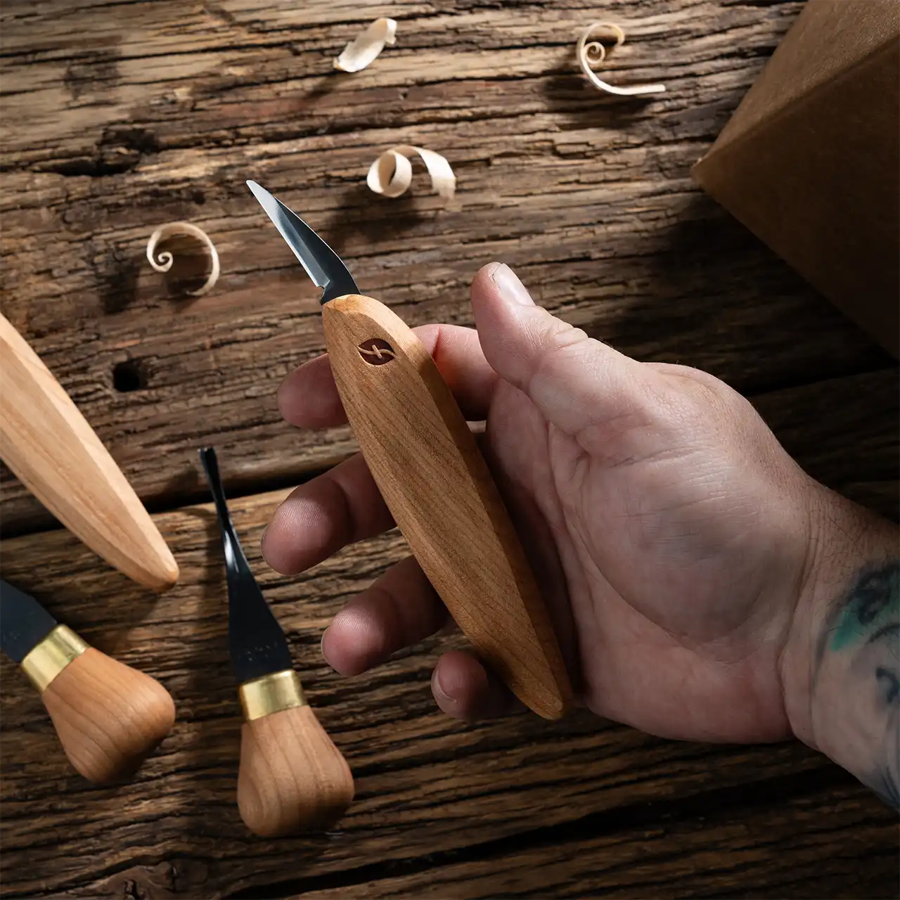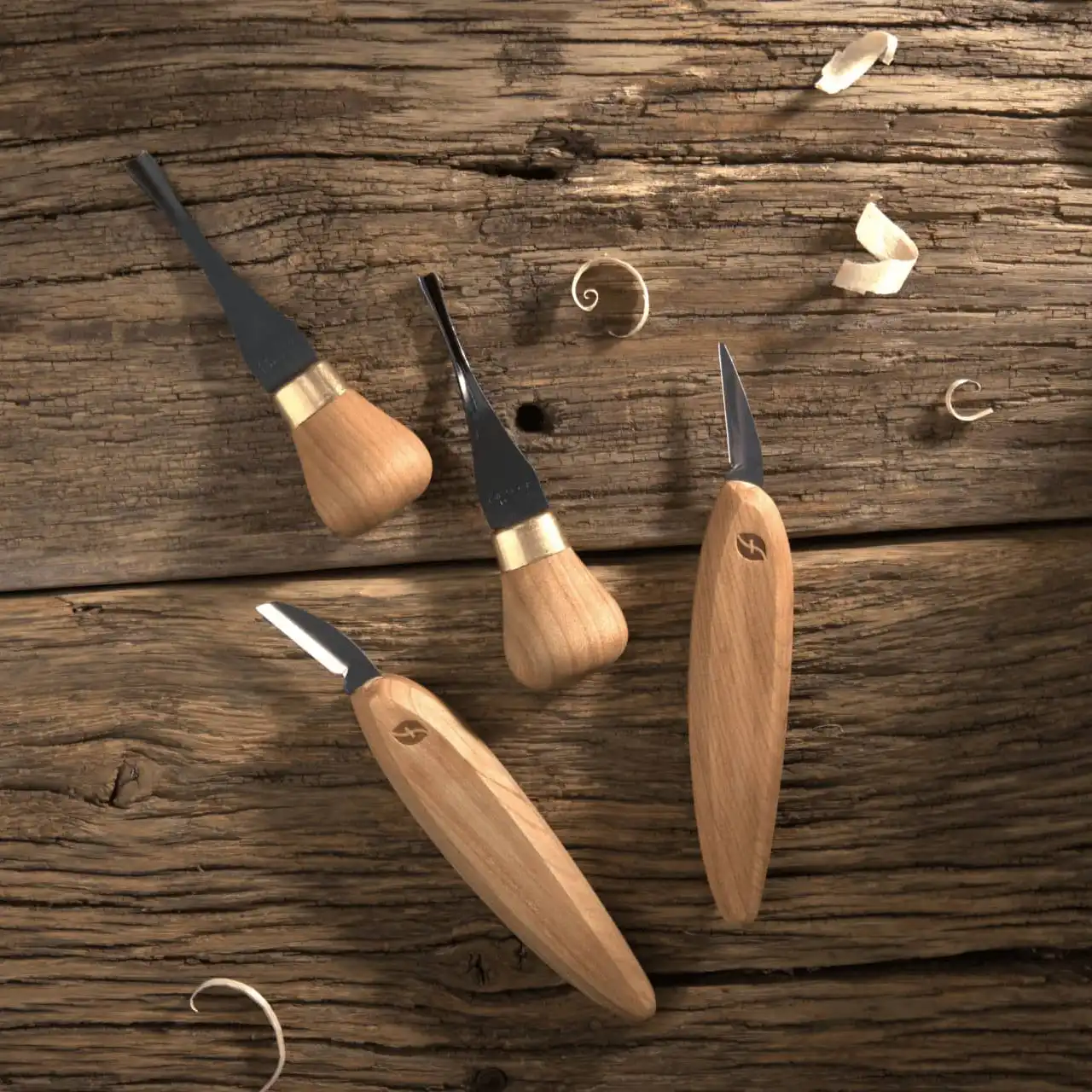 Premium Beginner Palm & Knife Set - Four of our most popular, hard-working classic knife blades & palm tools, now with new Premium Cherry Handles.
