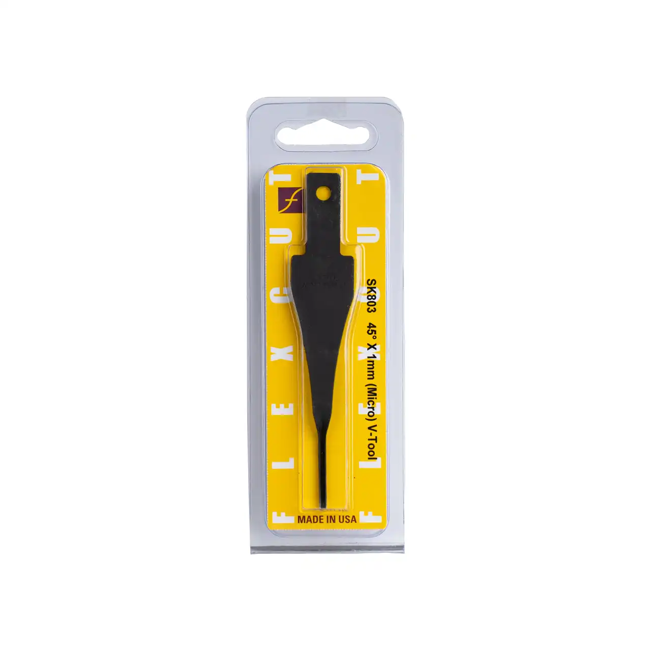 SK803 45 deg. x 1mm (micro) - Our smallest V-tool. The 45 degree angle will carve darker lines because of its depth to width ratio. Great for detailing hair.